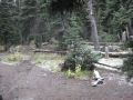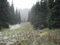 4.6 miles: Camp Mystery (5400 ft) - Another good place for a break in the alpine level. Surprised that snow was accumulating as it snowed.
